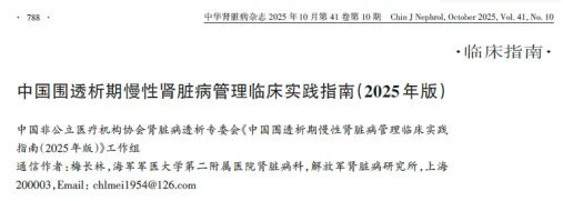 1.中国围透析期慢性肾脏病管理临床实践指南(2025 年版).中华肾脏病杂志.2005.41(10):788-810.